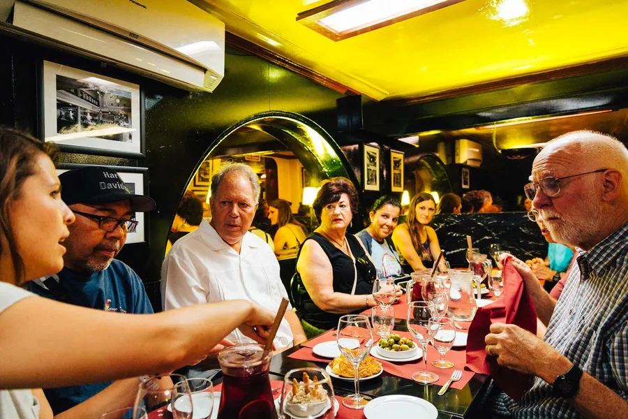 Stop 1 - A restaurant is inspired it’s Catalan owners love for tomatoes Stop 2 - A cozy space to savor traditional Catalan and Spanish tapas, Barri is inspired by the old cellars where locals would gather. Stop 3 - A Tavern specialising in recipes from Euskadi. Stop 4 - A restaurant with decor inspired by Feria de Abril in Seville, the birthplace of flamenco and sevillanas. Stop 5 - A very historical place where even the furniture is protected by law! Stop 6 - A hidden gem of contemporary Catalan cuisine Stop 7 - A hole-in-the-wall space serving very traditional catalan cuisine Stop 8 - A former motorbike workshop now a vibrant bodega-bar Stop 9 - A restaurant famous for its Pintxos