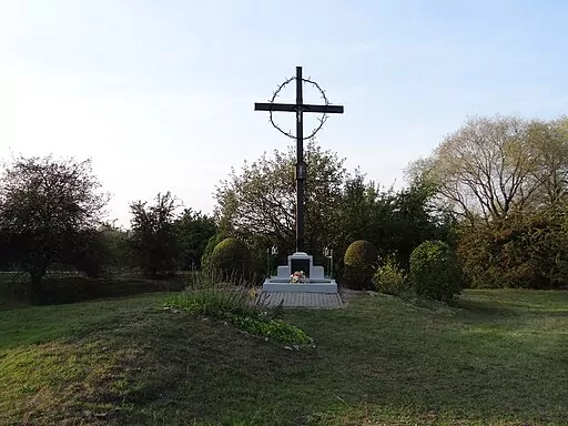 The cross on Hujowa Górka. It was placed after war by Poles memorizing also many Christian Poles victims of KL Plaszow and nearby execution spot. Source: Wikimedia.