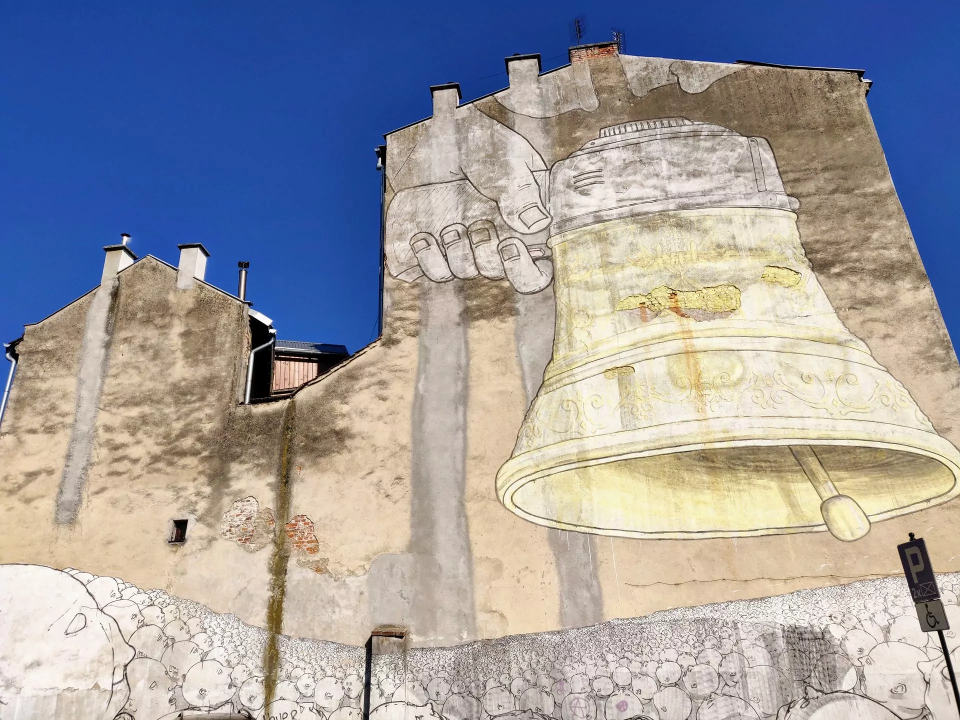 Street Art in Podgórze district - "Never Follow" by Italian artist Blu.