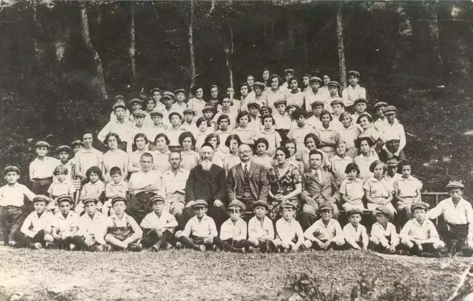 Dawid Kurzmann (in the middle, with a beard) with children from Kraków Jewish orphanage.