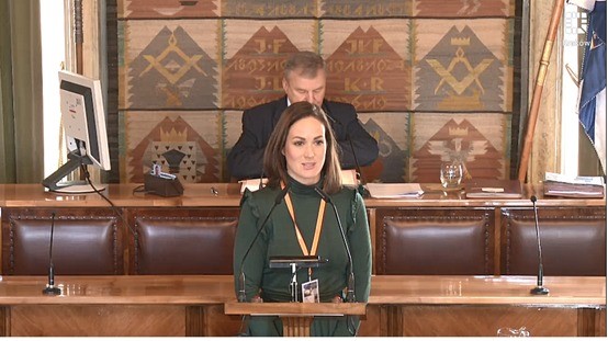 Małgorzta Fus, Walkative! board member, speaking in front of Kraków City Council.