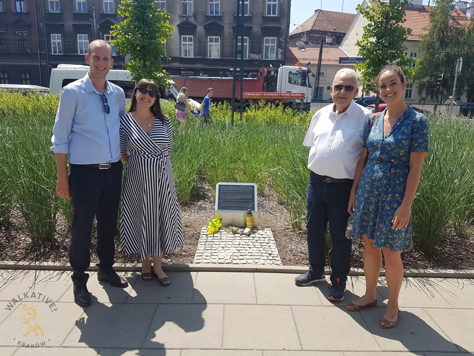 Some time later, in 2019 Kraków was visited by Marcel Kurzmann, Dawid’s grandson. We had a pleasure and honour to take him and his sons and show them the plaque. We have also visited together the site where the new street named after his grandfather would be.